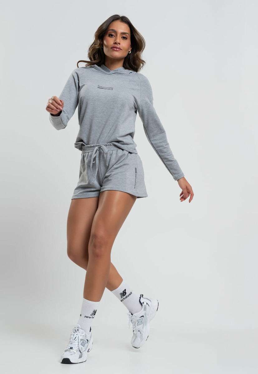 Este conjunto é a definição de conforto com estilo!O casaco, com capuz e mangas longas, tem um shape amplo que proporciona liberdade de movimento e um toque moderno.O plotter na parte frontal confere um charme extra à peça, tornando-a irresistível.O short, em modelagem soltinha, oferece o máximo de conforto e versatilidade, com cós elástico e cadarço fake que garantem um ajuste perfeito.O detalhe de plotter na lateral dá aquele toque único e cheio de personalidade.Perfeito para quem quer estar confortável e super estilosa ao mesmo tempo!Confeccionado em tecido de alta qualidadeCasaco com capuzShort com cadarço fakeCós anatômico com elásticoMedidas da modelo: Altura 1,70cm | Busto 85cm | Cintura 60cm | Quadril 90cm | Manequim 36Modelo veste PComposição: 63% Poliéster, 34% Viscose, 3% Elastano