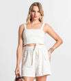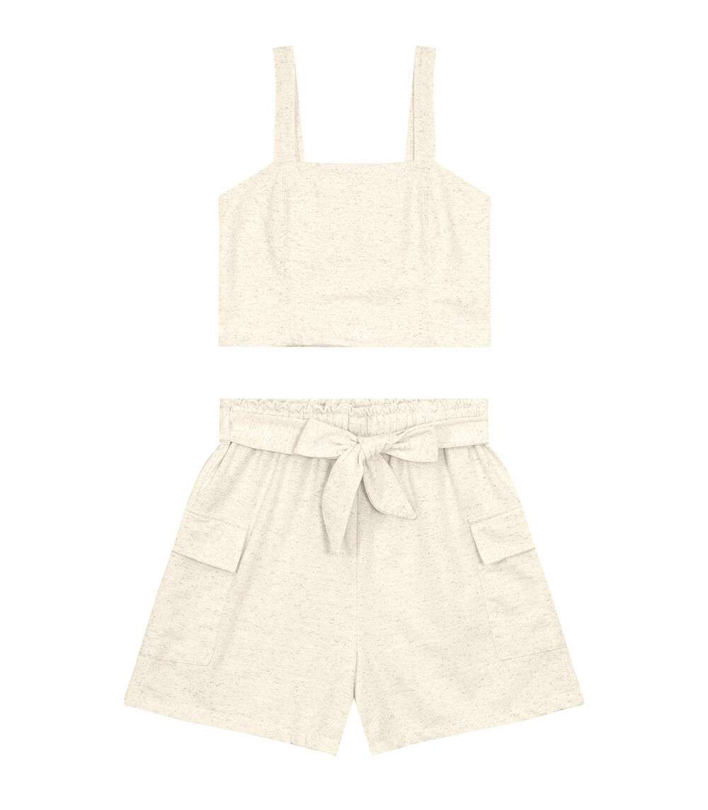 O Conjunto Feminino Cropped Com Shorts Endless é a combinação perfeita de estilo e conforto. Confeccionado em meia malha e moletinho maquinetado, o cropped apresenta uma frente dupla que oferece um visual moderno e sofisticado, com um design embutido que destaca a silhueta. O shorts, com cinto duplo talhado, não apenas complementa o look, mas também garante um ajuste perfeito e personalizado. Os bolsos laterais adicionam praticidade.