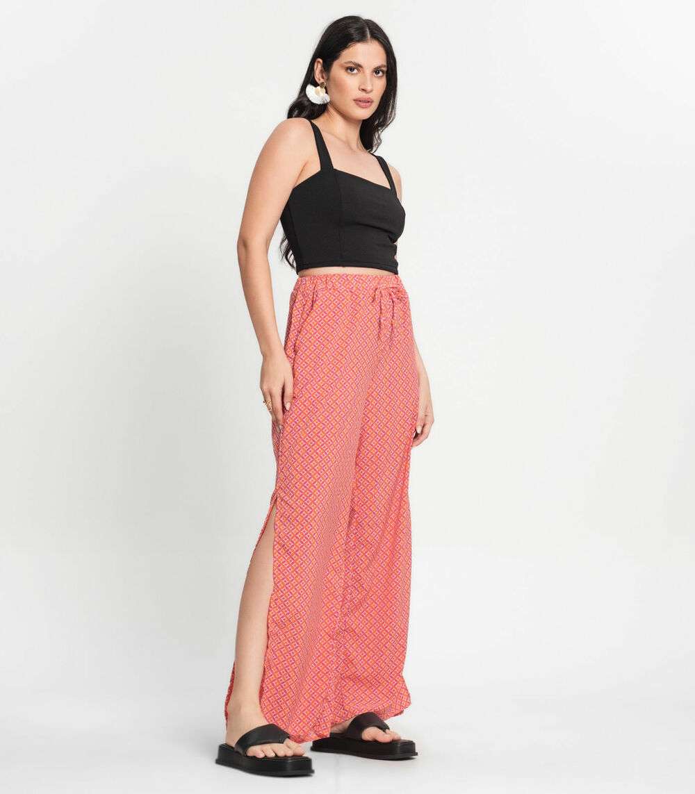 Conjunto Feminino Cropped e Calça Estampada Select Laranja