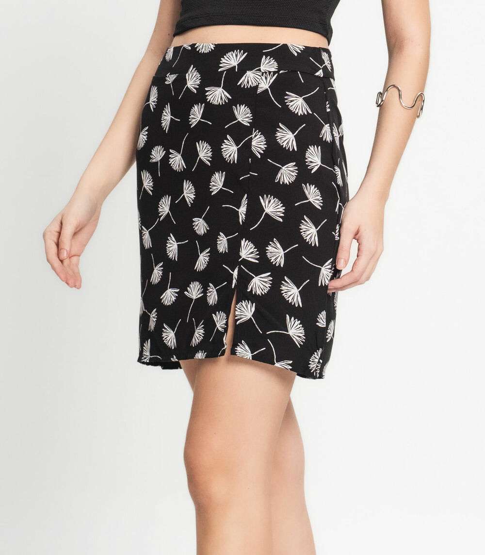 Conjunto Feminino Saia Estampada e Cropped Select Preto
