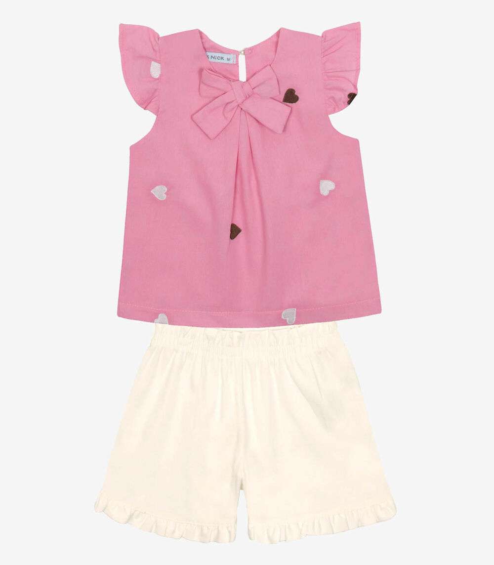 Conjunto Infantil Bata Com Shorts Trick Nick Rosa