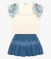 Conjunto Infantil Blusa Com Saia Jeans Trick Nick Bege