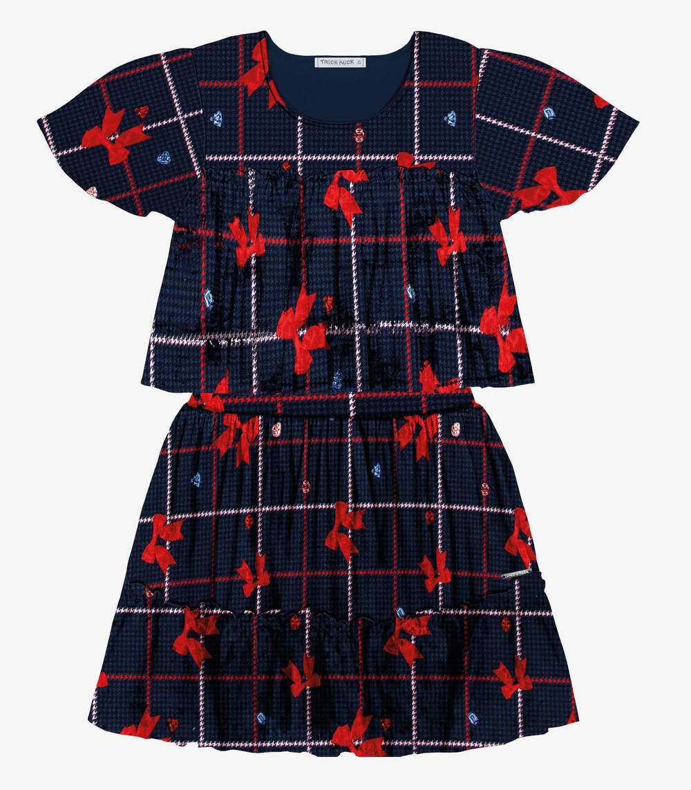 O Conjunto Infantil Blusa com Saia Tule Trick Nick combina elegância e conforto. A blusa, feita de tule e cotton leve, apresenta babados sobrepostos com franzido e uma estampa sublimada vibrante, proporcionando um visual encantador. A saia possui cós com elástico e cintura com franzido para um ajuste confortável, além de babados sobrepostos que adicionam um toque de sofisticação. O shorts interno garante conforto e praticidade, tornando o conjunto perfeito para diversas ocasiões.