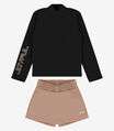 O Conjunto Infantil Blusa com Short Saia Rovi Kids combina estilo e conforto para os pequenos. A blusa de manga longa, confeccionada em ribana 2x1 e moletom, possui gola alta, estampa charmosa e aplique de strass, que adiciona um toque de brilho. O shorts saia, com cós elástico, oferece ajuste perfeito e liberdade de movimento, enquanto o termocolante da marca garante autenticidade e estilo. Ideal para dias frescos, o conjunto é a escolha perfeita para um look confortável e moderno.