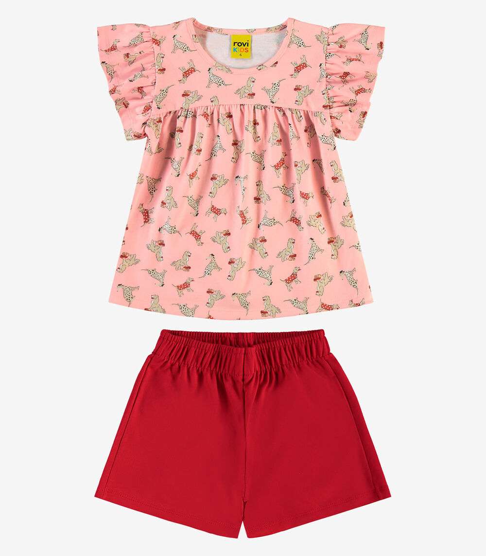 Conjunto Infantil Blusa Com Shorts Rovi Kids Rosa