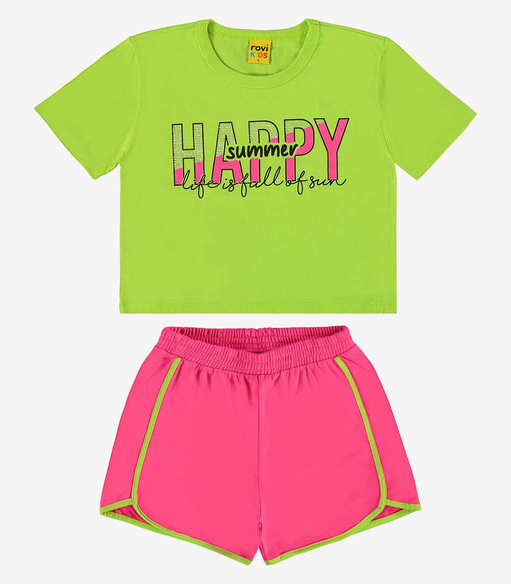 O Conjunto Infantil Blusa com Shorts Rovi Kids é a escolha ideal para um visual divertido e confortável. Confeccionado em meia malha e moletinho basic, oferece um toque suave e durável. A blusa se destaca com cava deslocada, estampa localizada adornada com strass, adicionando um brilho especial e charme ao look. O shorts, com cós elástico, proporciona um ajuste flexível e confortável. Perfeito para o dia a dia, este conjunto une estilo e praticidade, mantendo as pequenas confortáveis e na moda.