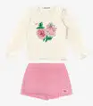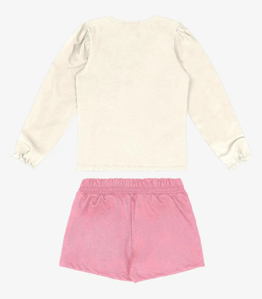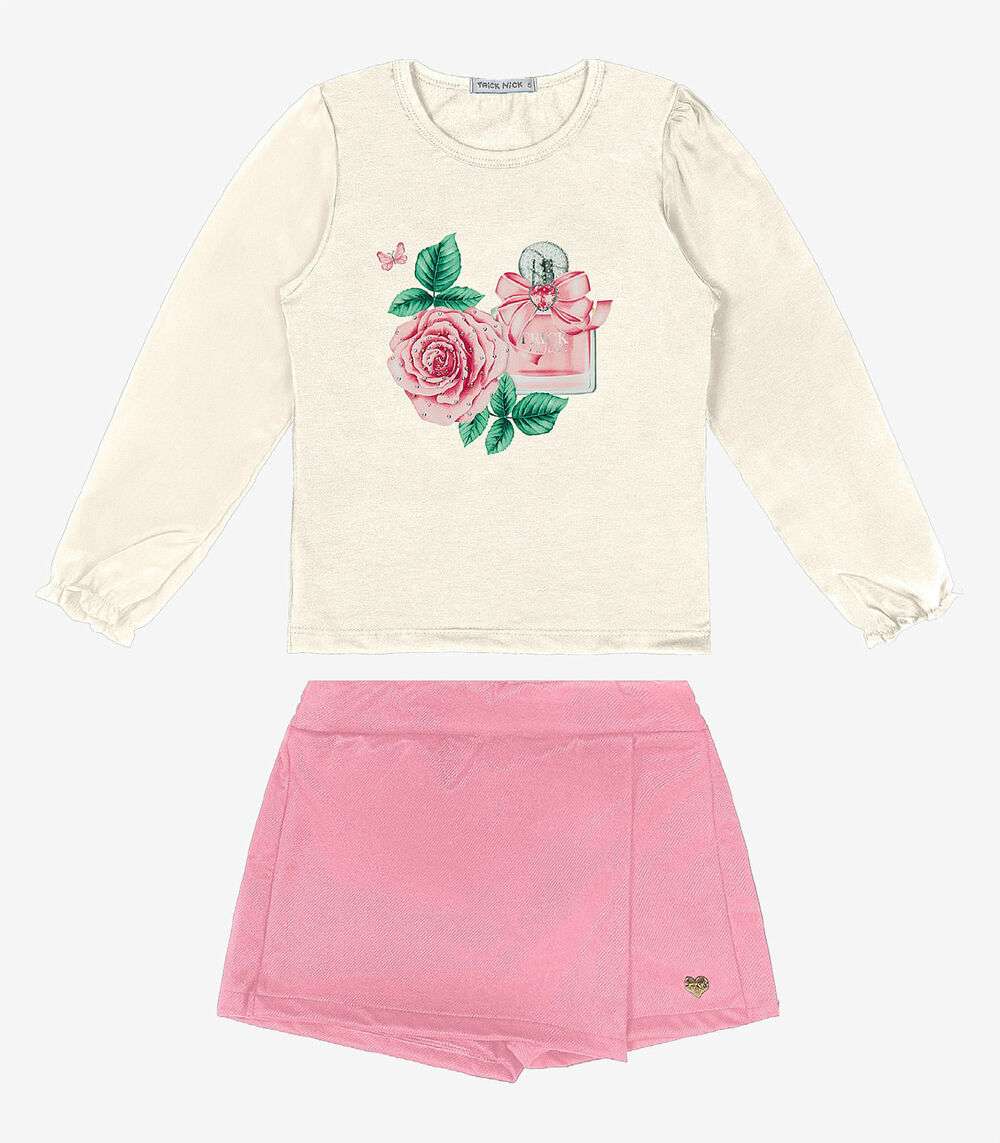 O Conjunto Infantil Blusa Com Shorts Saia Trick Nick é a escolha perfeita para unir conforto e estilo. Confeccionado em cotton leve, poly flex e suede sarjado, proporciona maciez e durabilidade. A blusa destaca-se pelo franzido nas mangas e pela sublimação com strass termocolante, conferindo um toque de brilho e modernidade ao visual. O shorts saia apresenta cós colocado frente liso com elástico, garantindo um ajuste confortável, além de contar com uma plaquinha metalizada.