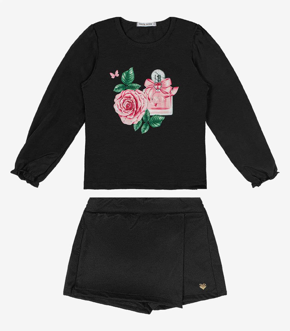 Conjunto Infantil Blusa Com Shorts Saia Trick Nick Preto