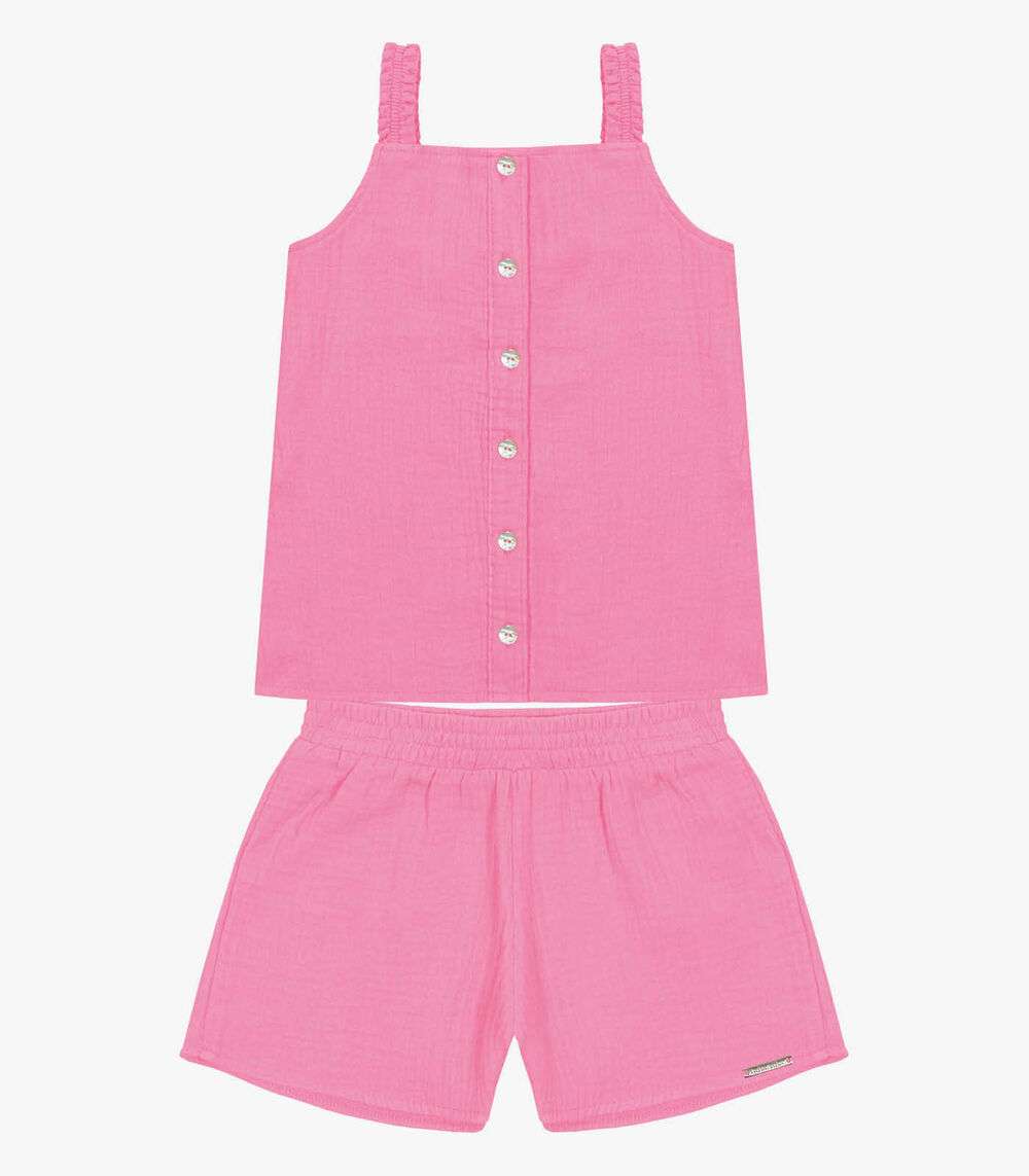 Conjunto Infantil Blusa Com Shorts Trick Nick Rosa