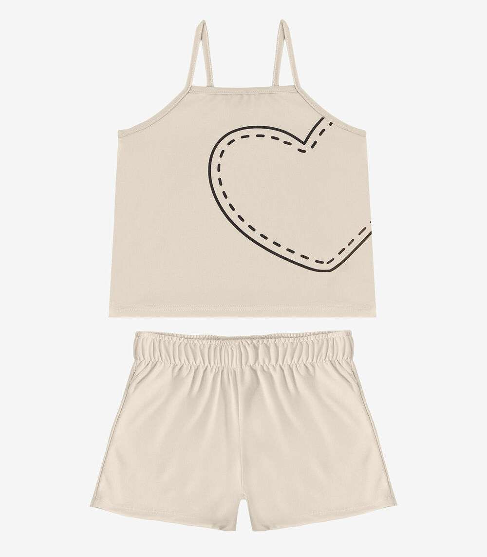 Conjunto Infantil Blusa e Shorts Feminino Select Bege