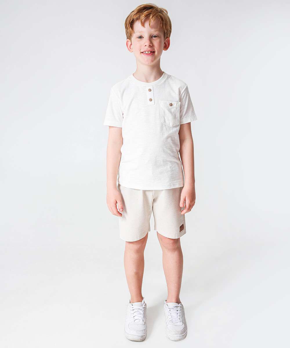 Conjunto Infantil Botões Manga Curta MR Tam 4 a 10 Off White