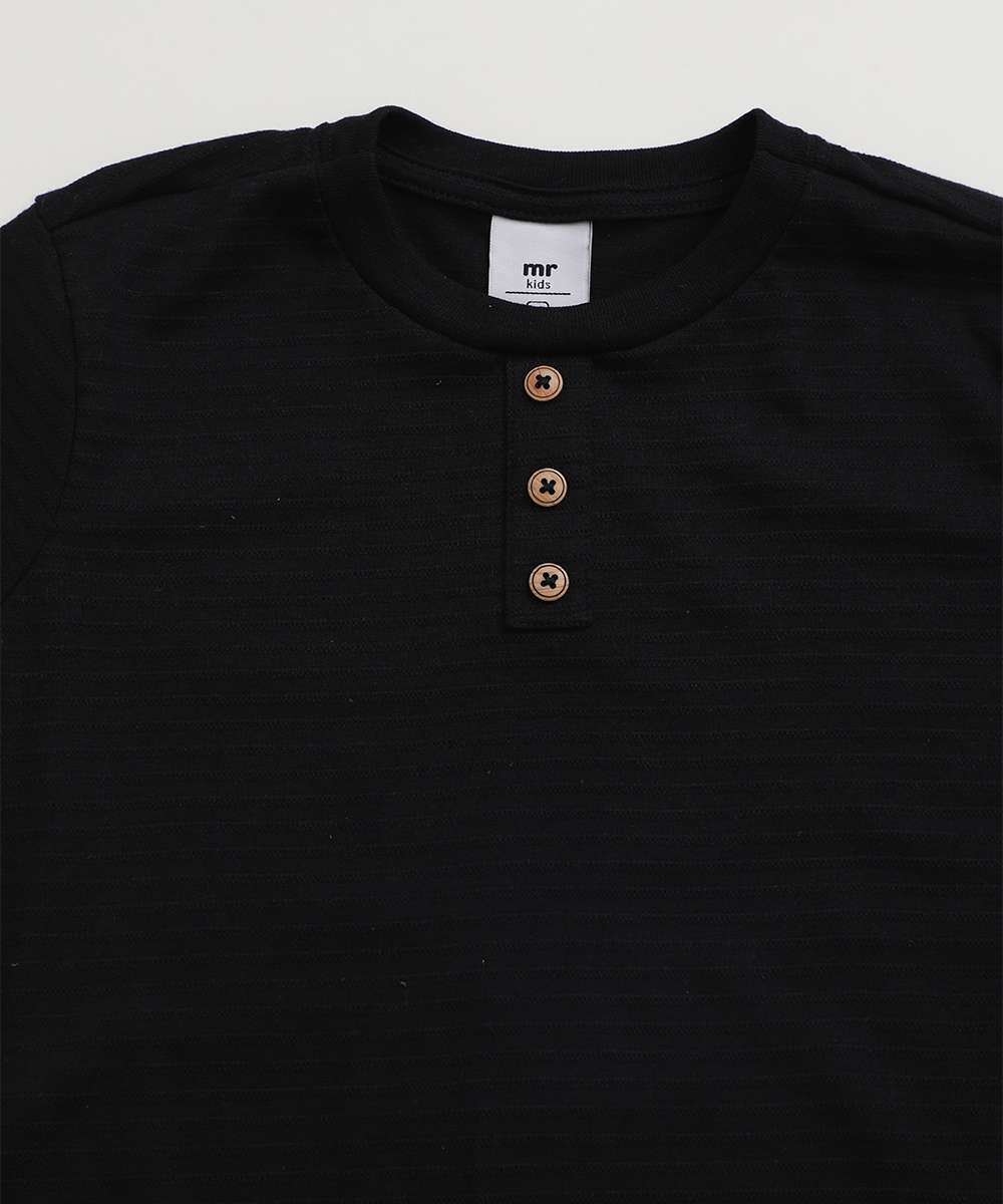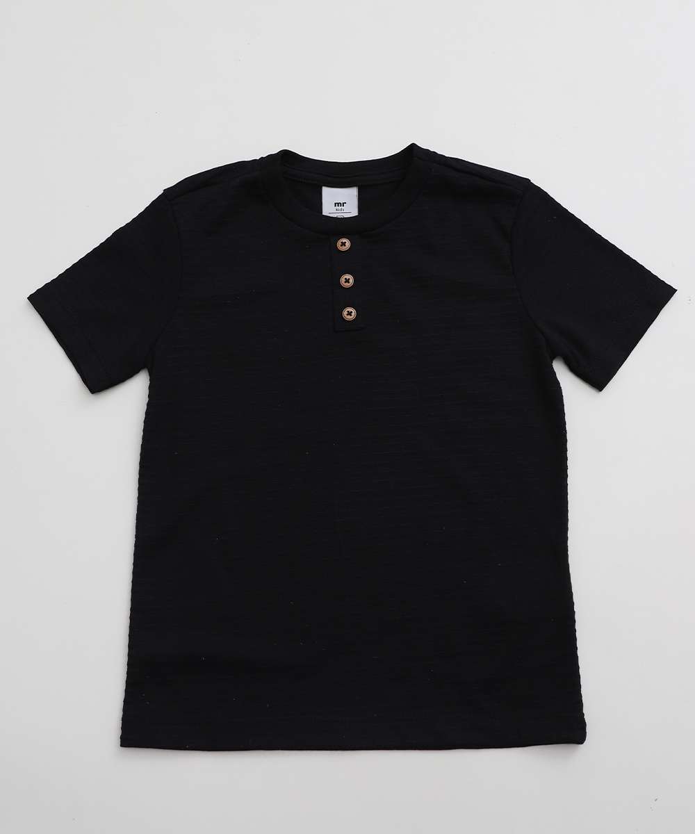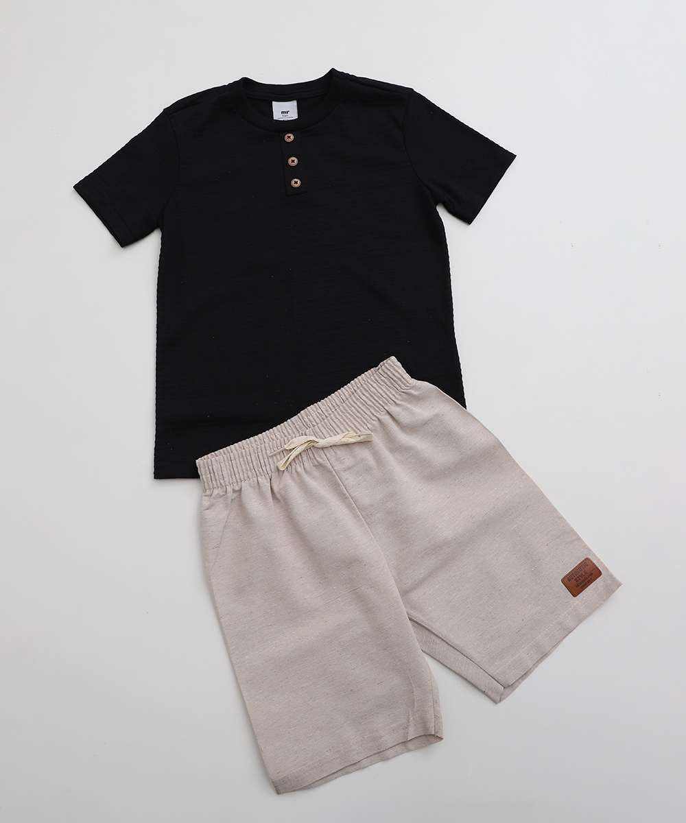 Conjunto Infantil Botões Manga Curta MR Tam 4 a 10 Preto