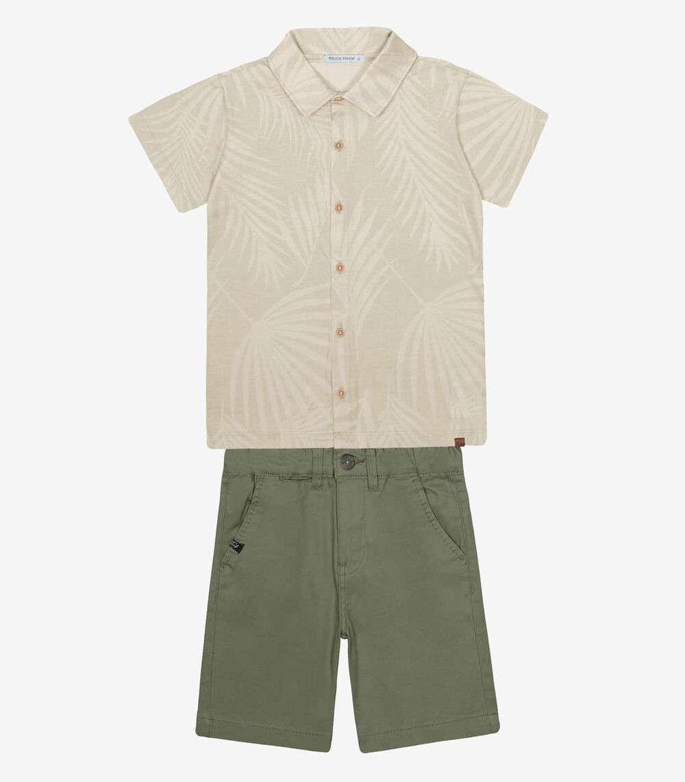 Conjunto Infantil Camisa Com Bermuda Trick Nick Bege