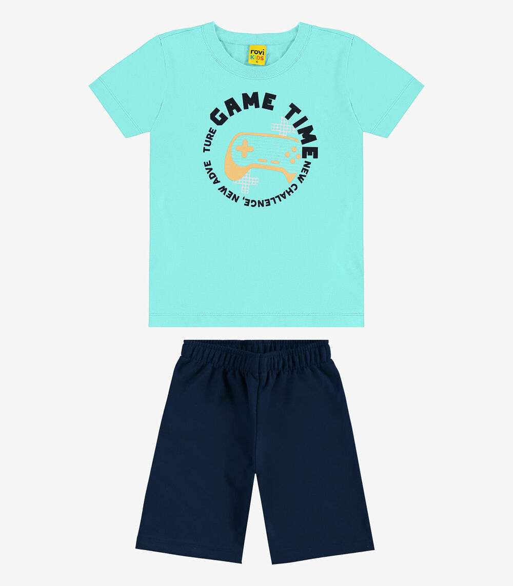 Conjunto Infantil Camiseta Com Bermuda Rovi kids Azul