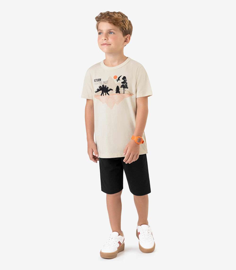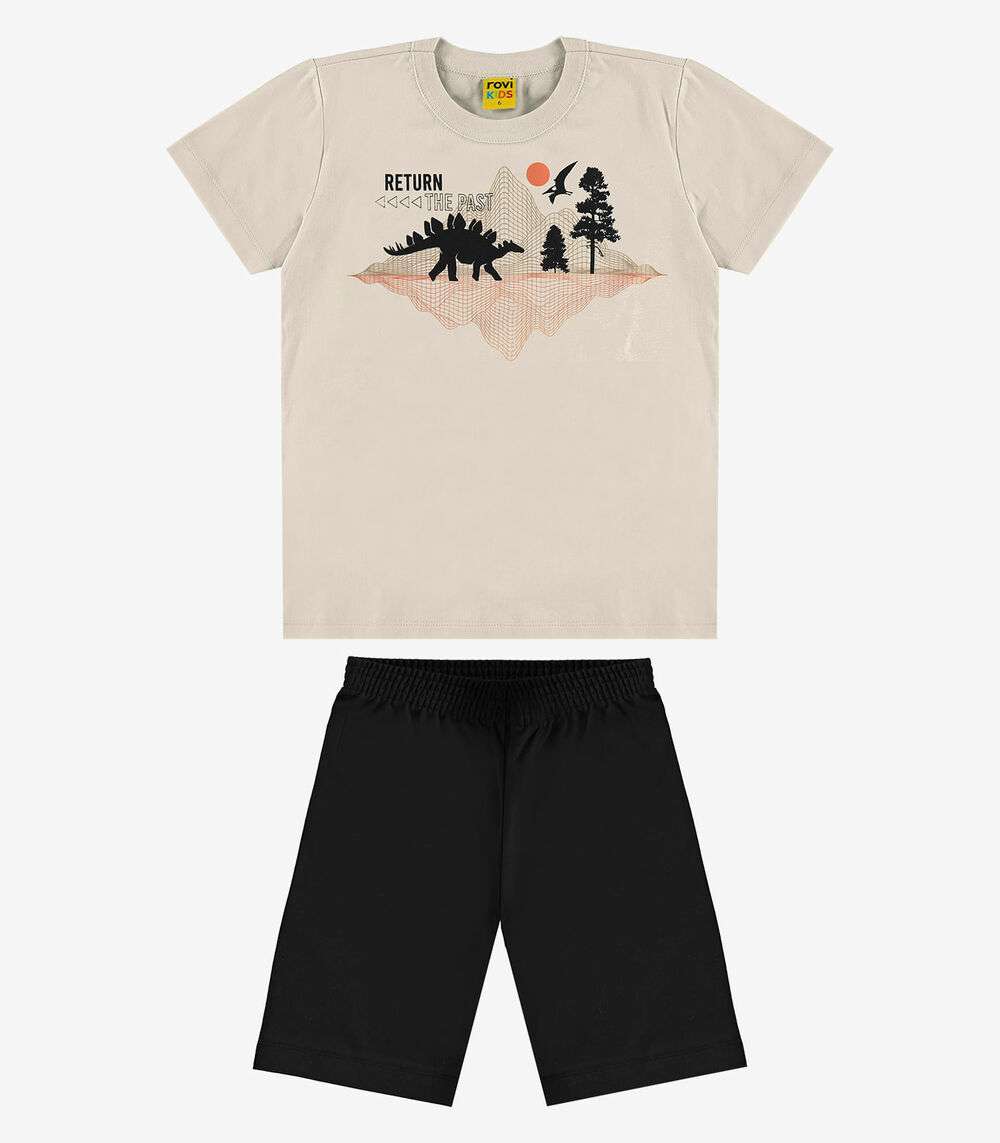Conjunto Infantil Camiseta com Bermuda Rovi Kids Bege