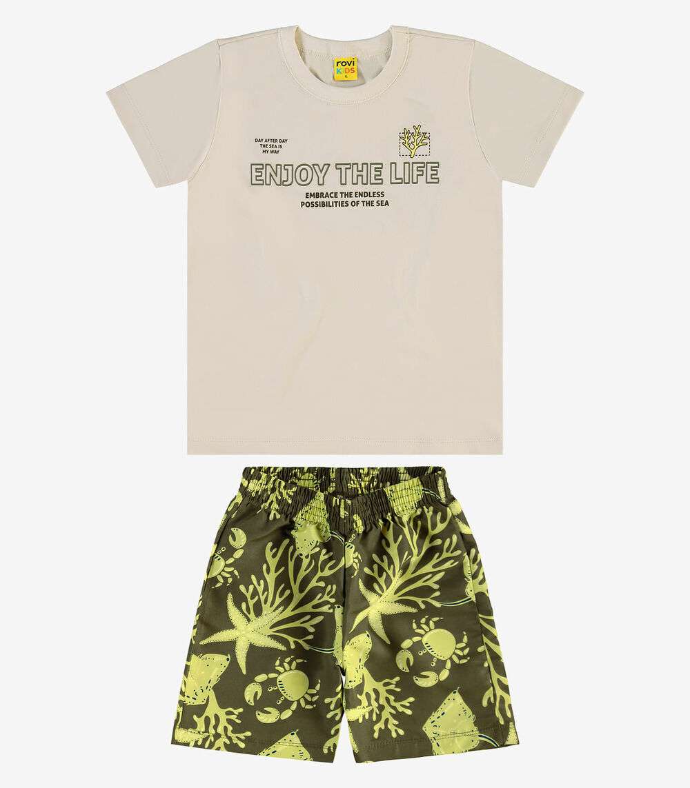 Conjunto Infantil Camiseta Com Bermuda Rovi Kids Bege
