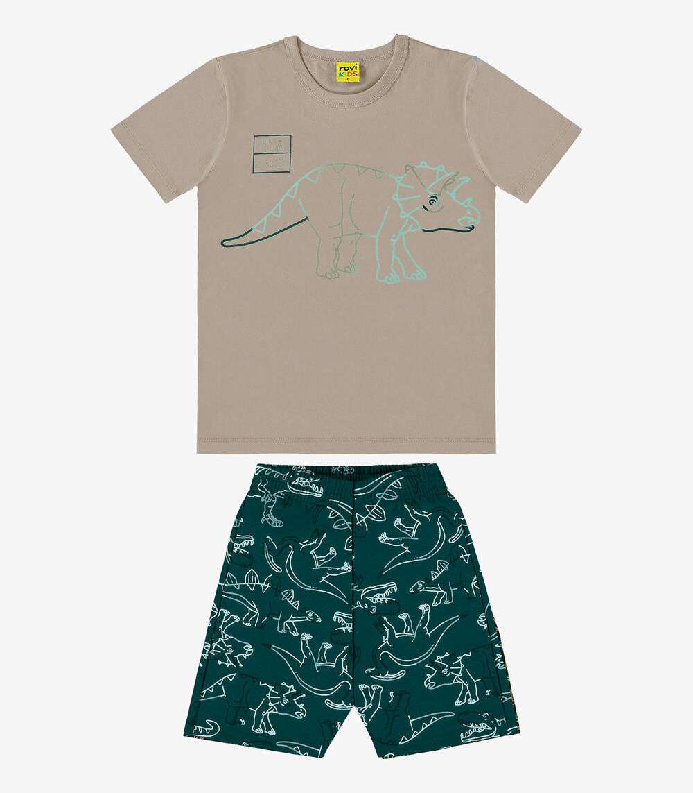 O Conjunto Infantil Camiseta Com Bermuda Rovi Kids é uma escolha divertida e confortável para os pequenos aventureiros. Feito com materiais de qualidade, a camiseta em meia malha apresenta um decote em ribana e uma estampa localizada de dinossauro, adicionando um toque de diversão ao visual. A bermuda em moletinho basic possui um cós elástico para um ajuste confortável e uma estampa rotativa de dinossauros, completando o conjunto com estilo e praticidade.
