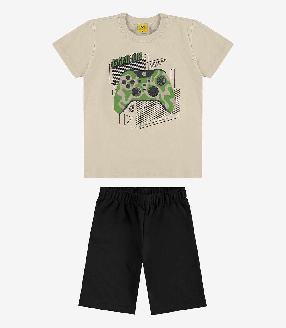 Conjunto Infantil Camiseta Com Bermuda Rovi kids Bege