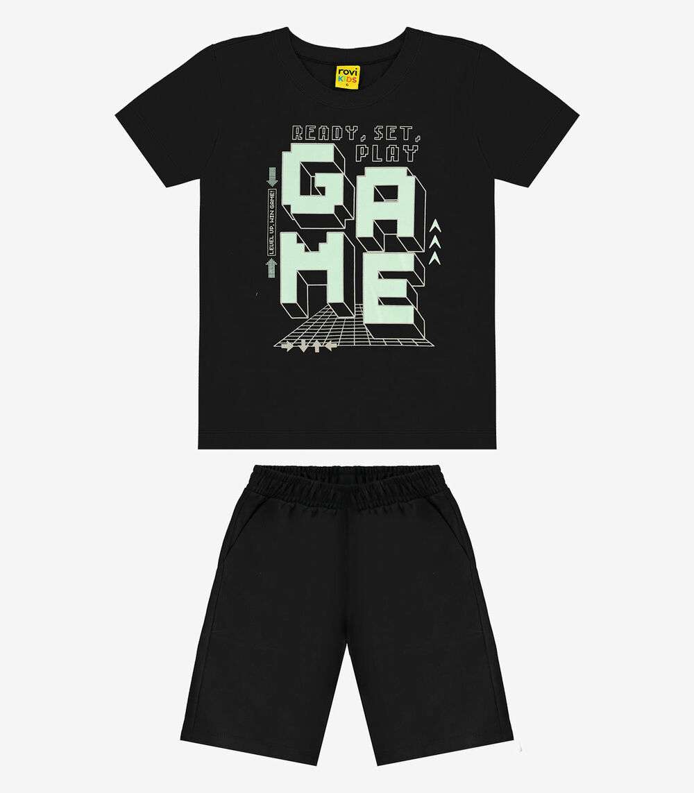 Conjunto Infantil Camiseta Com Bermuda Rovi kids Preto