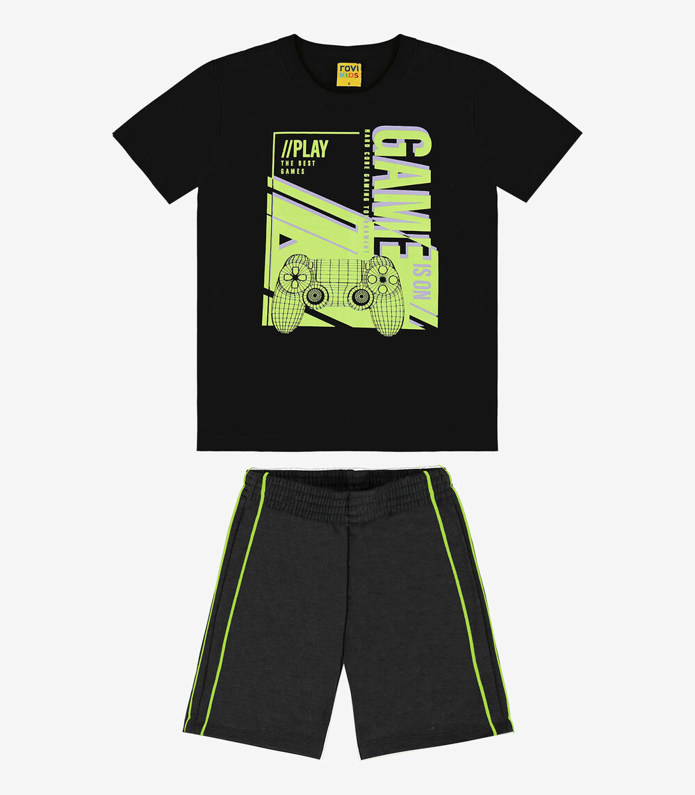 Conjunto Infantil Camiseta Com Bermuda Rovi Kids Preto