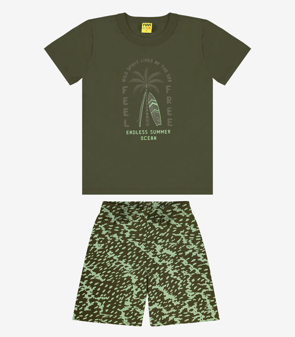 Conjunto Infantil Camiseta Com Bermuda Rovi Kids Verde