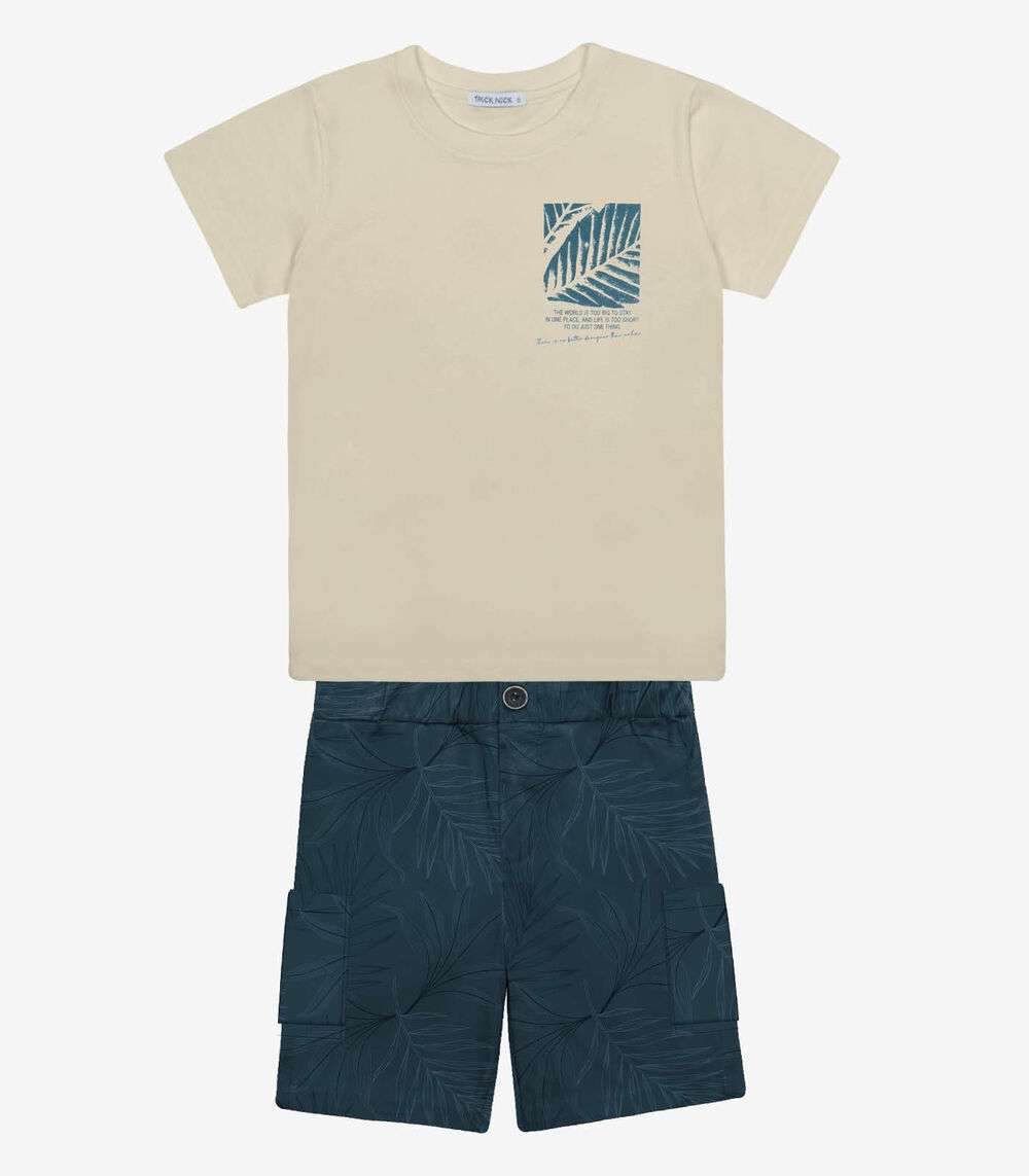 Conjunto Infantil Camiseta Com Bermuda Trick Nick Bege