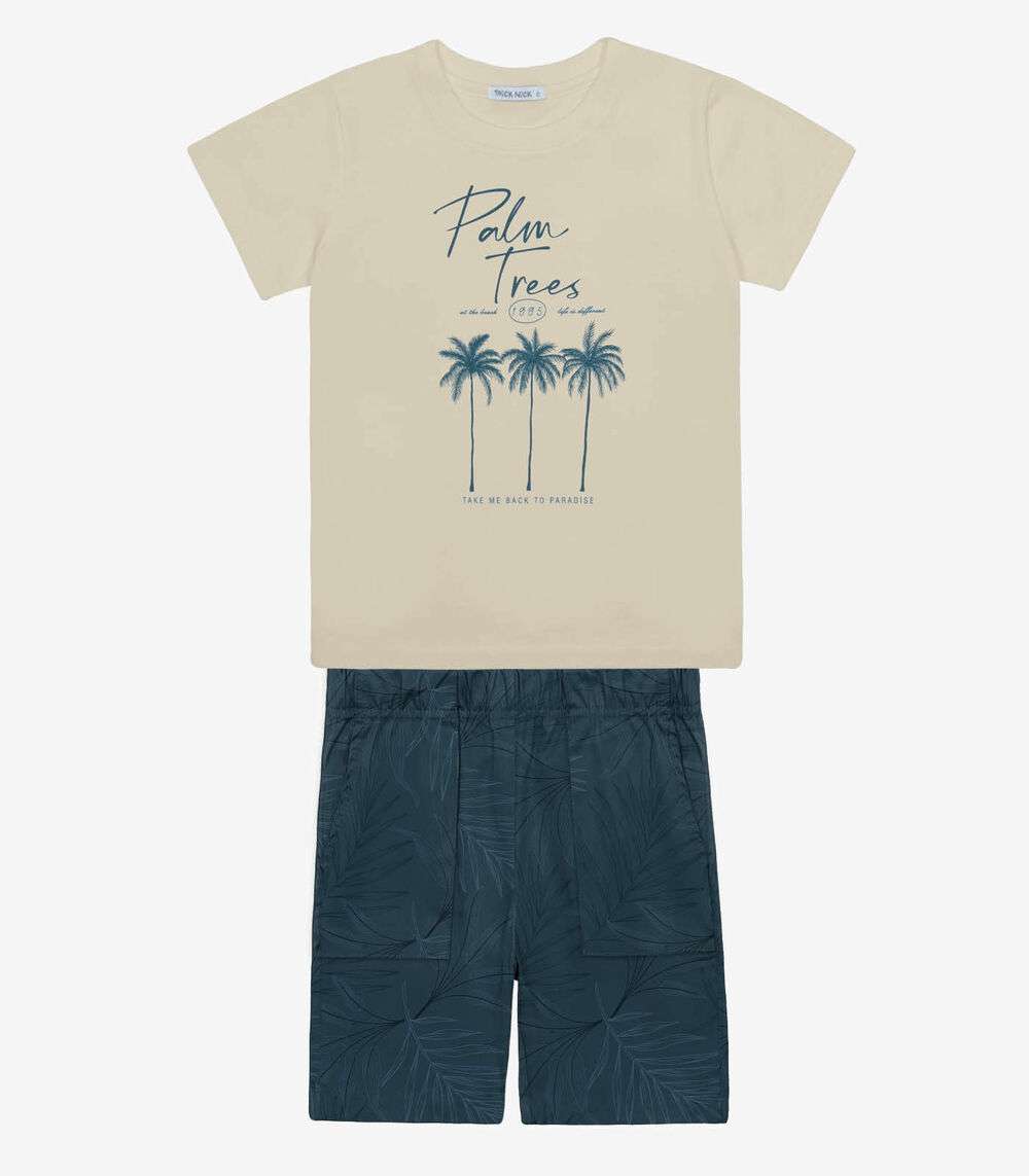 Conjunto Infantil Camiseta Com Bermuda Trick Nick Bege