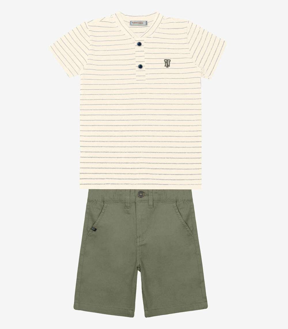 Conjunto Infantil Camiseta Com Bermuda Trick Nick Bege
