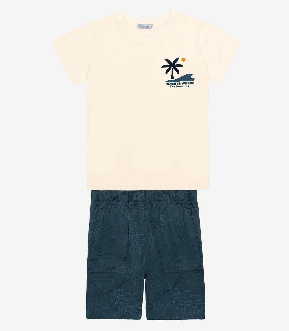 Conjunto Infantil Camiseta Com Bermuda Trick Nick Bege