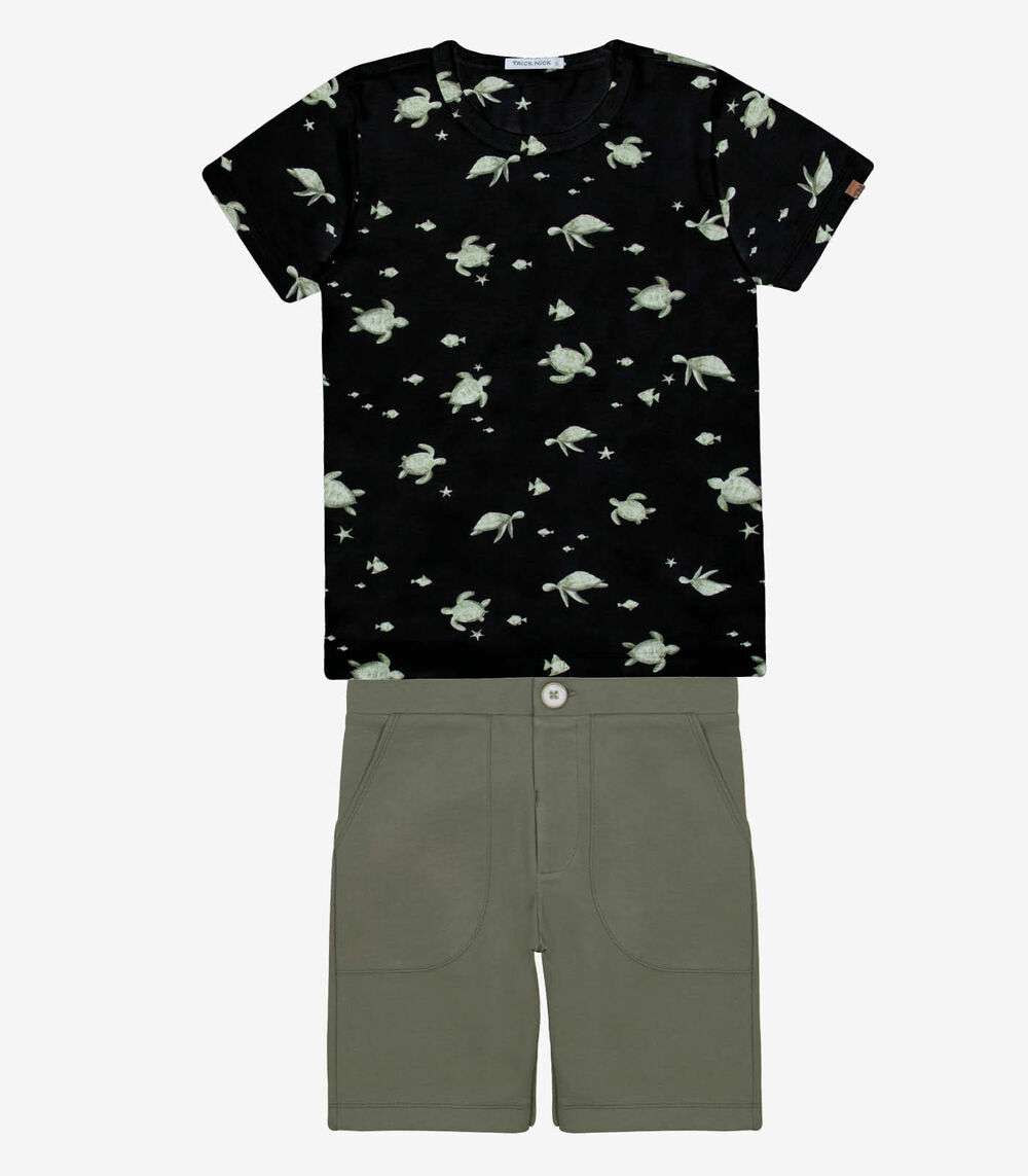 Conjunto Infantil Camiseta Com Bermuda Trick Nick Preto