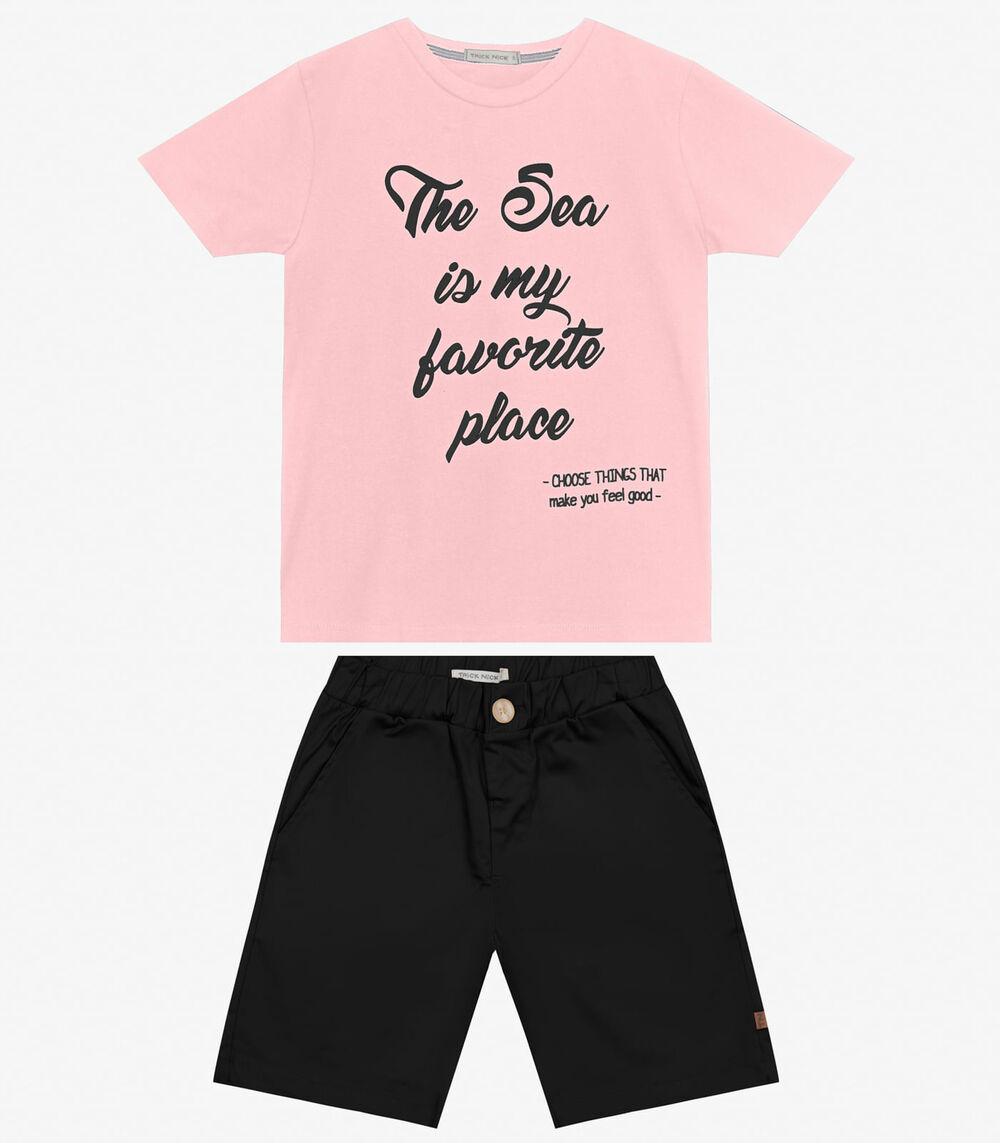 Conjunto Infantil Camiseta com Bermuda Trick Nick Rosa