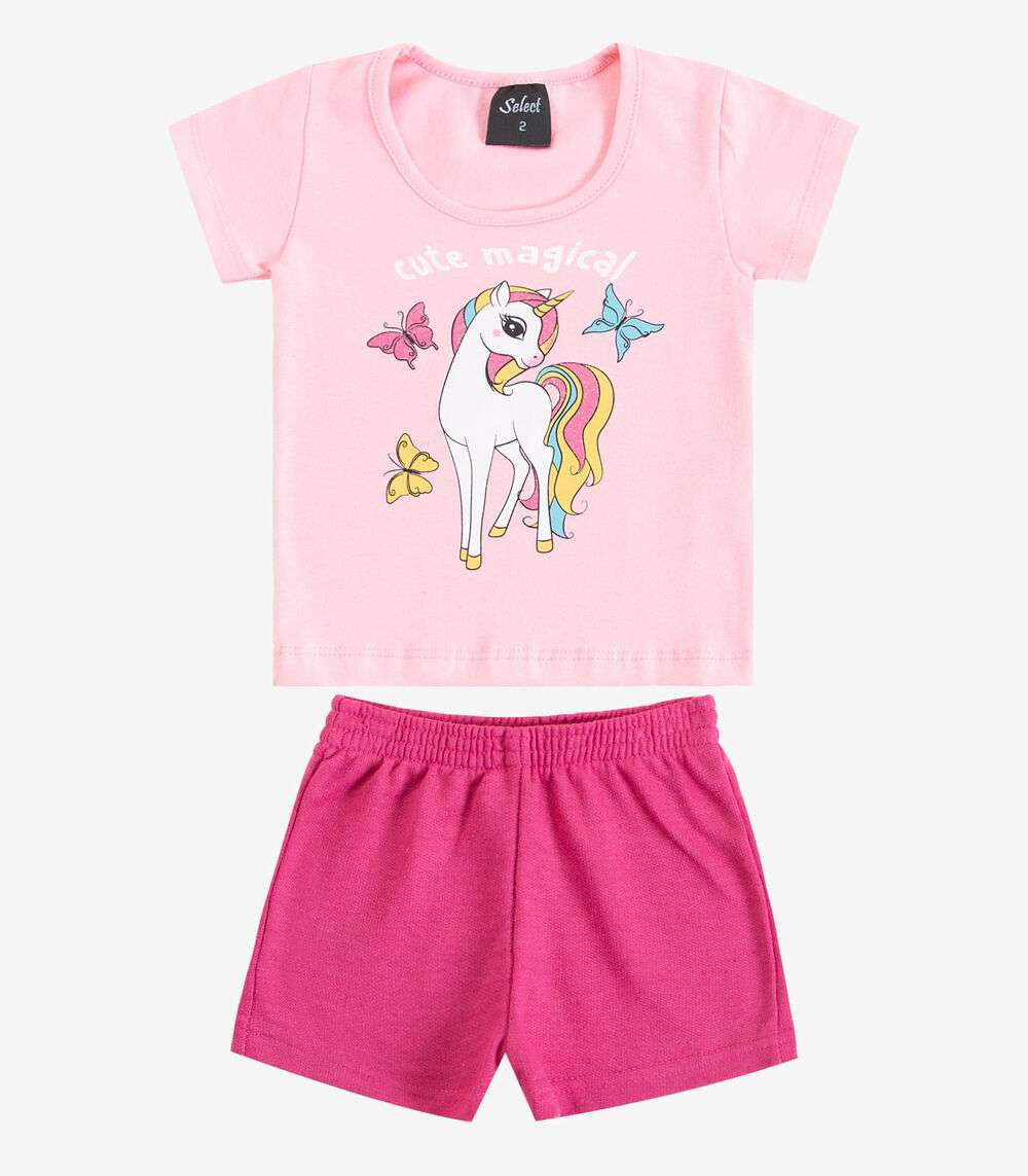 Conjunto Infantil Curto Verão Menina Select Rosa