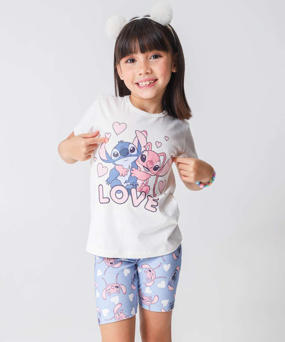 Conjunto Infantil Estampa Stitch Off White Disney Tam 4 a 10