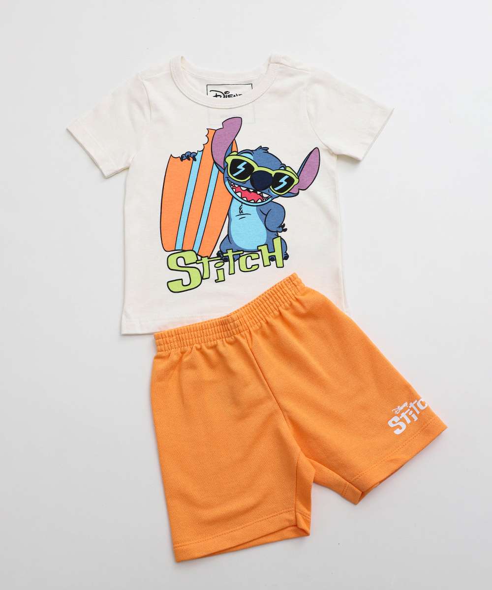 Conjunto Infantil Estampa Stitch Tam 1 a 3 Laranja