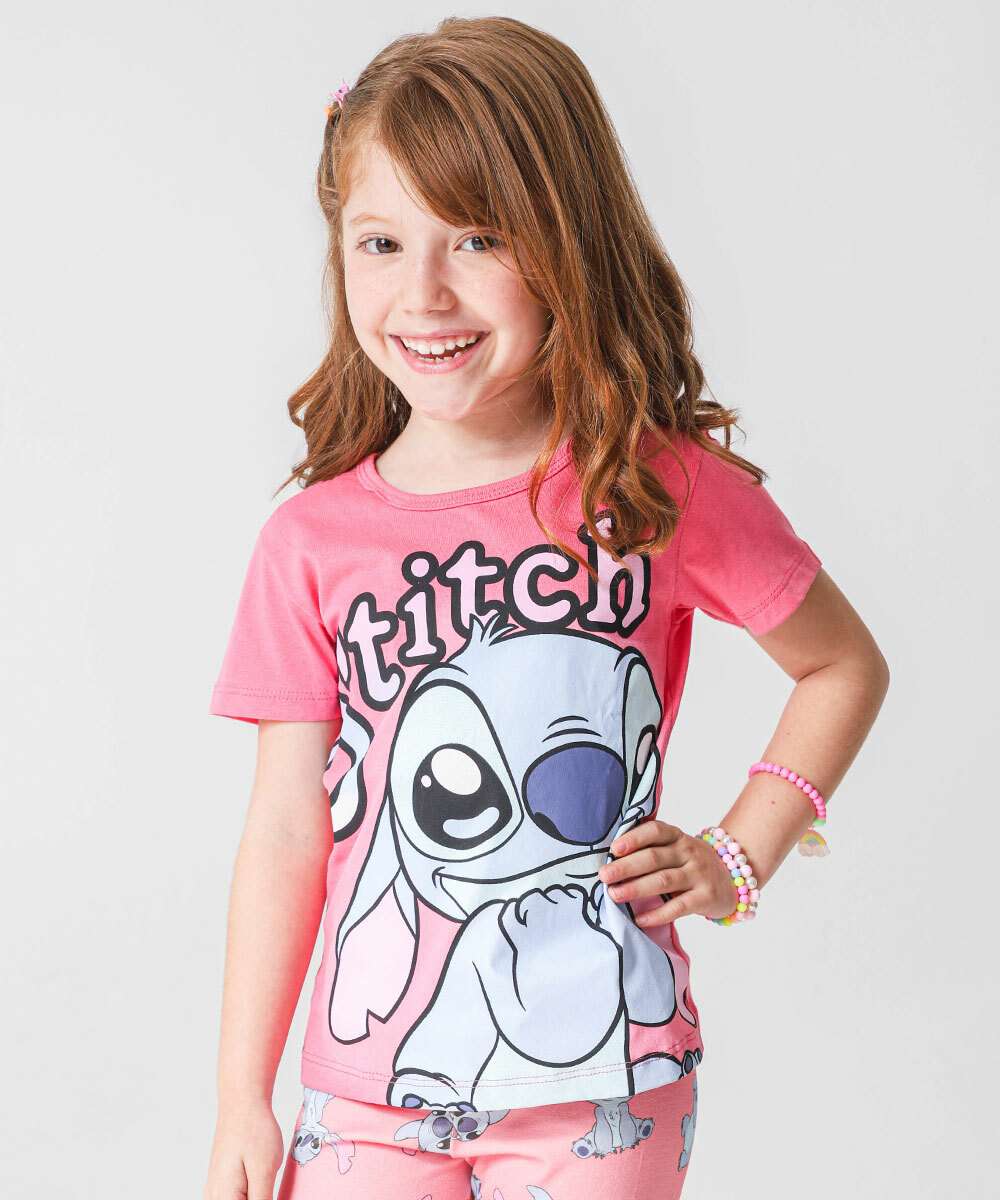 Conjunto Infantil Estampa Stitch Tam 4 a 10 Rosa