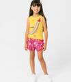 Conjunto Infantil Feminino, composto por blusa e shorts. Blusa desenvolvida em Meia Malha, modelo regata com gola redonda; possui estampa localizada com desenho de pincel e flores. Shorts desenvolvido em Microfibra com estampa rotativa floral; possui elástico no cós. A dupla ideal para passeios ao ar livre! Combine com: tênis e jaqueta.