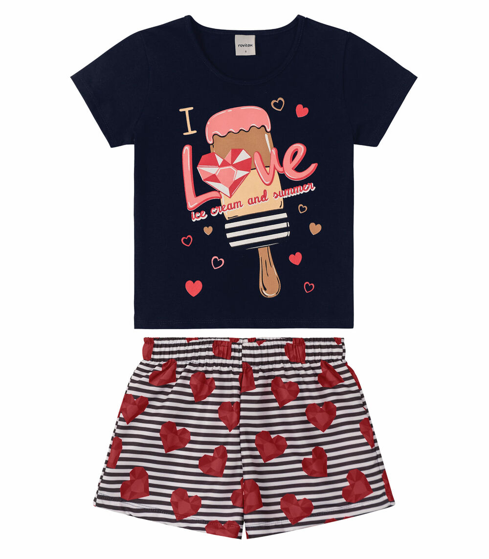 Conjunto Infantil Feminino Picolé Rovitex Azul