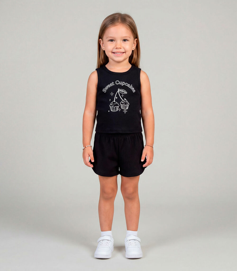 Conjunto Infantil Feminino Regata e Short Select Preto
