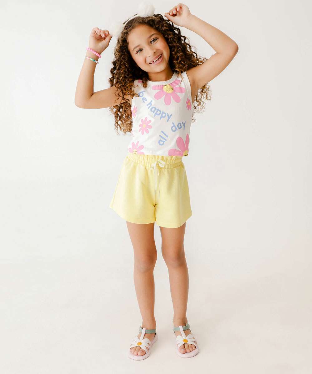 Conjunto Infantil Flores Glitter Manga curta Tam 4 a 10