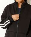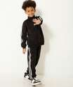 Conjunto infantil, ideal para meninos de 04 até 10 anos de idade, confeccionado em malha helanca, composto por casaco e calça com listras. Possui casaco com fechamento por zíper no entremeio, manga longa e bolso canguru; calça com cós elástico, tira para amarração decotativa, barra em ribana, acabamento e costura no tom.