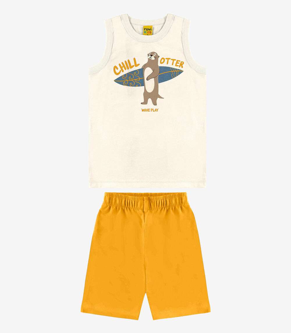 Conjunto Infantil Machão Com Bermuda Rovi Kids Bege
