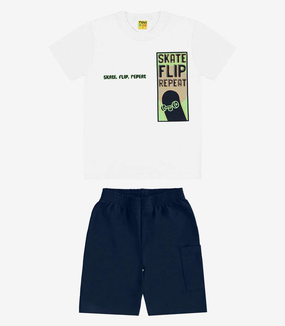 Conjunto Infantil Machão com Bermuda Rovi Kids Branco