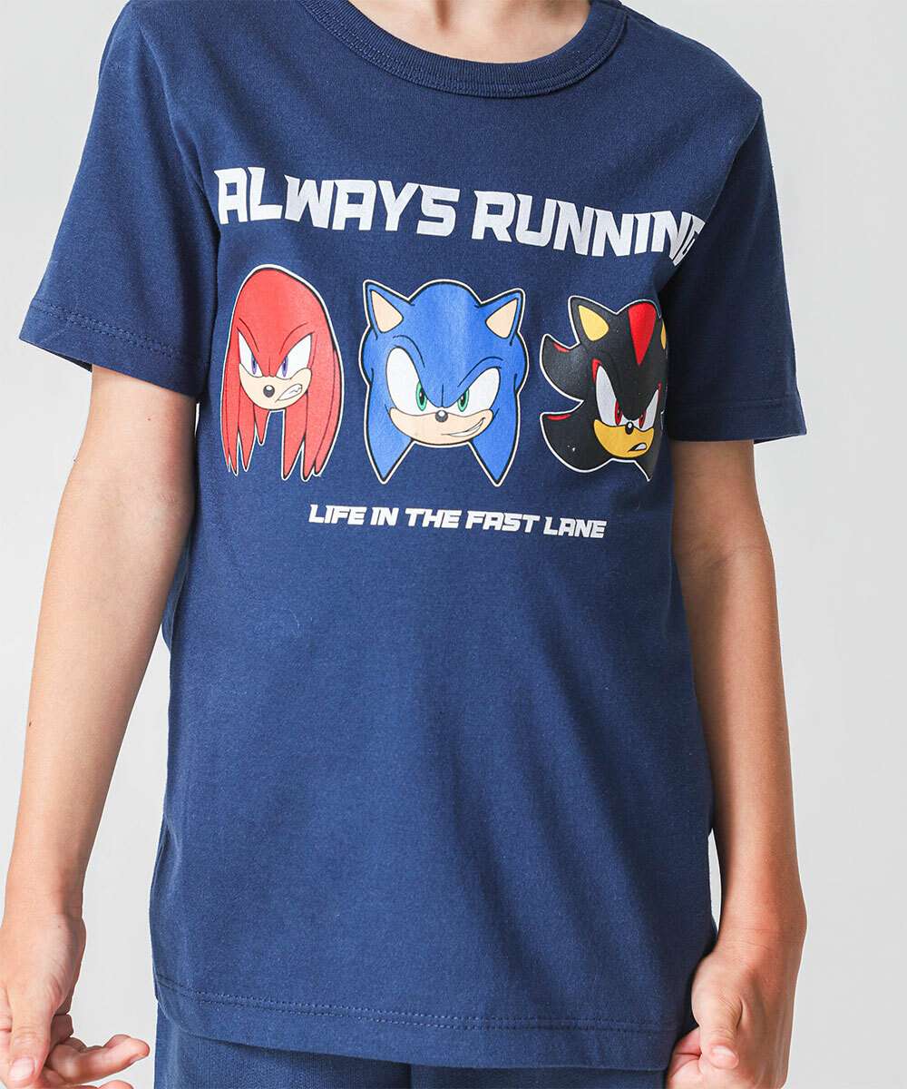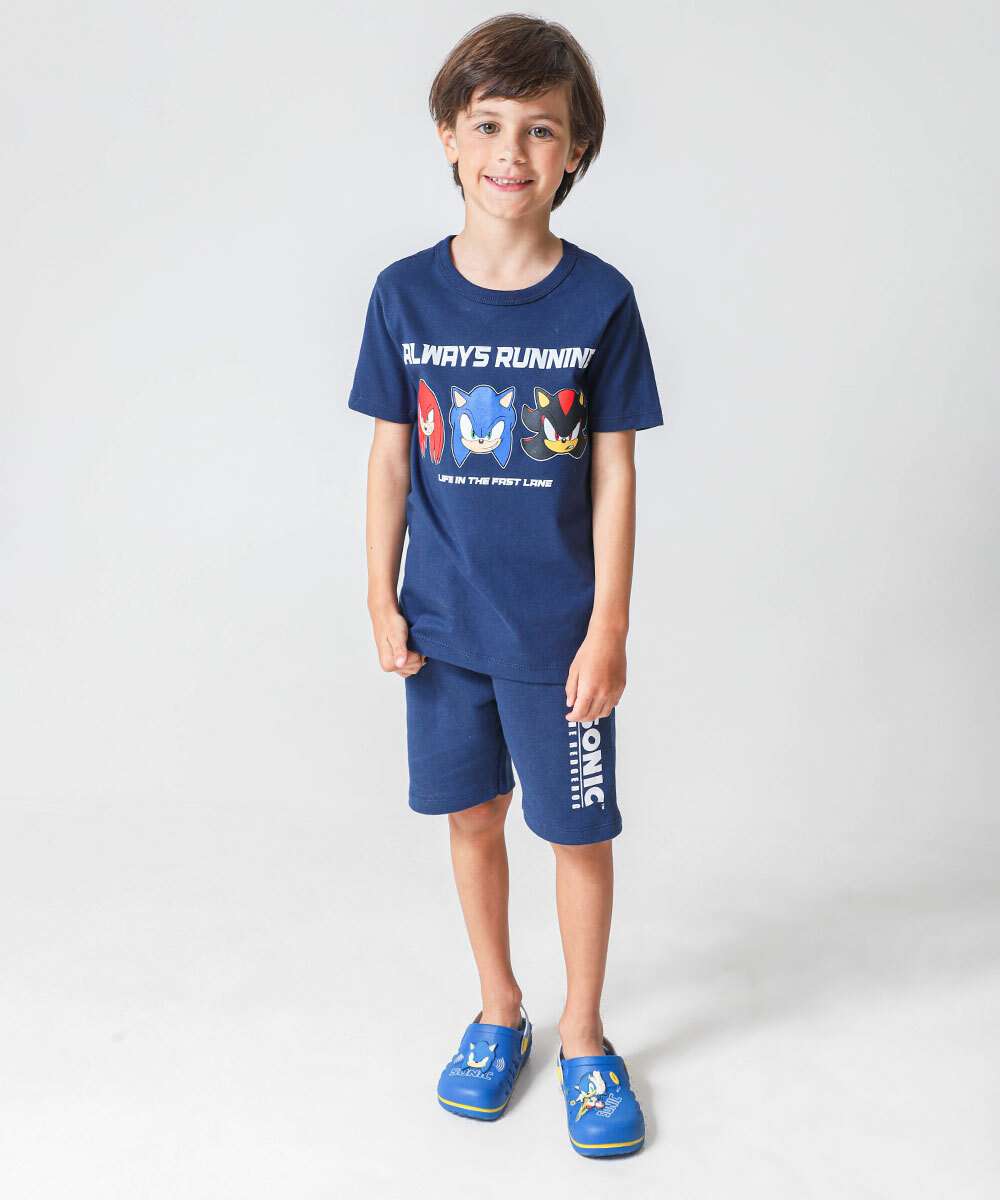 Conjunto Infantil Manga Curta Sonic Tam 4 a 10 Azul