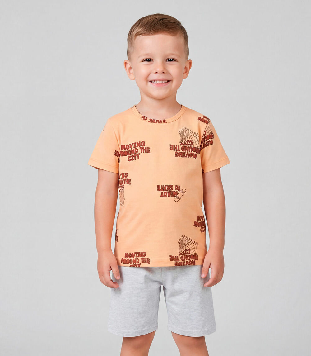 Conjunto Infantil Masculino Com Estampa Localizada Laranja
