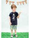 Roupa infantil menino formada por Conjunto contendo:- Camiseta em Meia Malha com detalhe em silk screen plastisol, gola em ribana e barras viradas. Bermuda feita em Tricoline estampado com 2 bolsos frontais e 2 bolsos laterais com lapelas, cós com elástico embutido. A junção dessas 2 peças fornam um conjunto muito indicado para nosso verão pois são tecidos leves que vão deixar os menininhos muito fresquinhos e vestidos com um toque de clima tropical do Brasil.