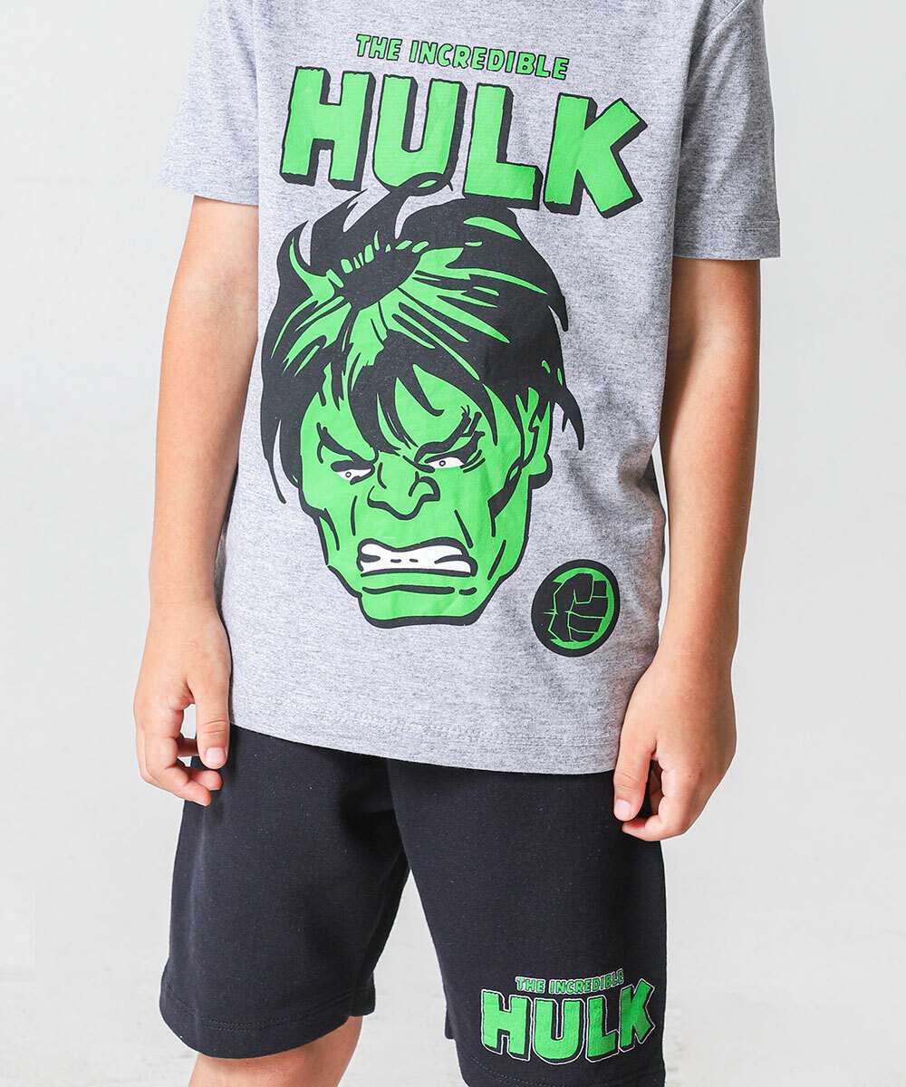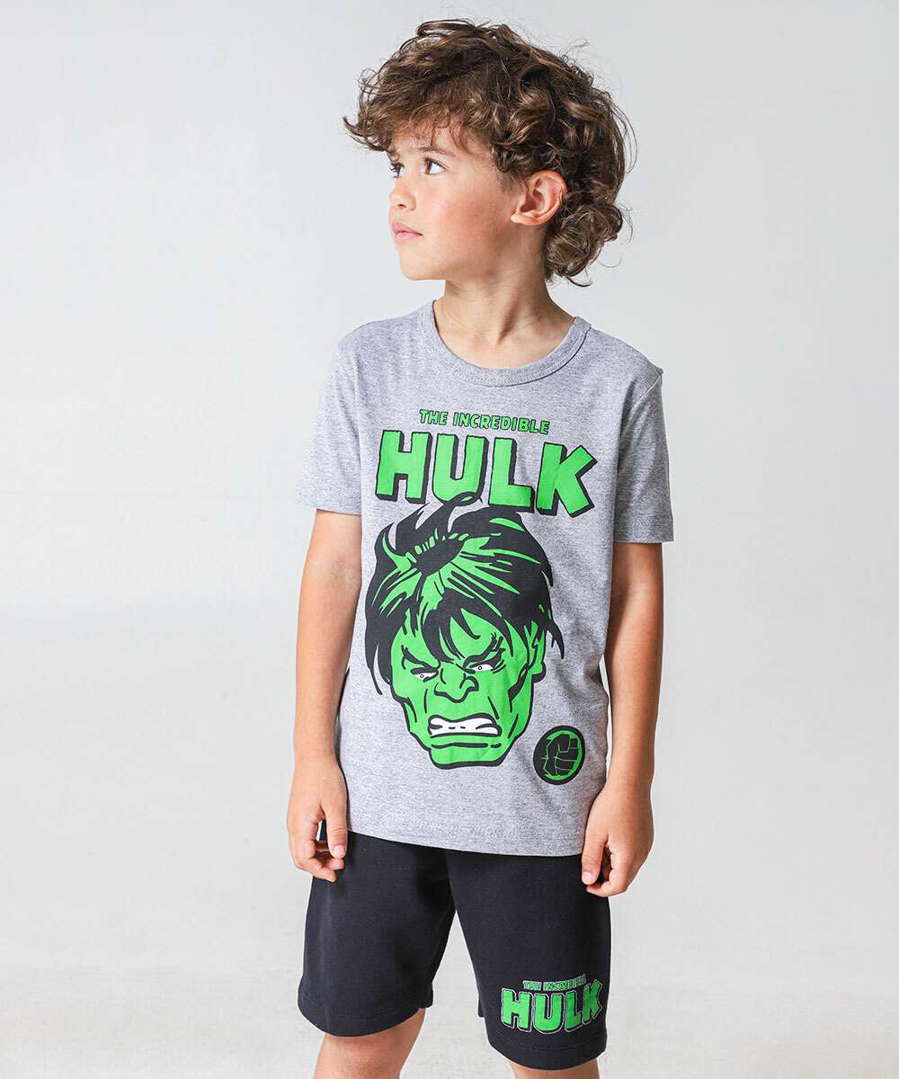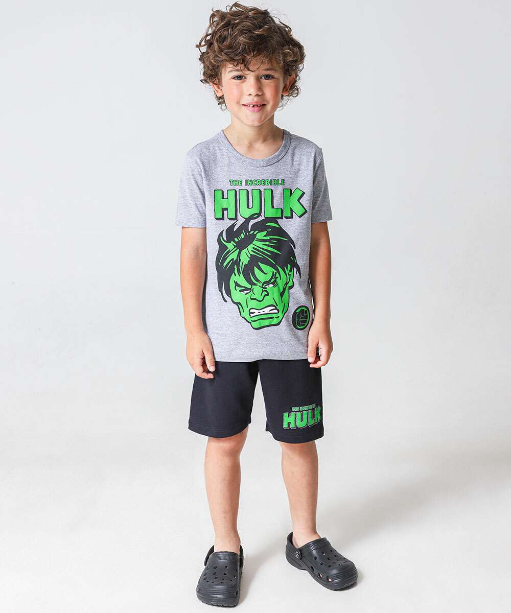 Conjunto Infantil Mescla Hulk Marvel Tam 4 a 10 Cinza