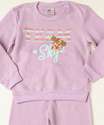 Conjunto infantil, ideal para meninas de 01 até 05 anos de idade, confeccionado em malha moletinho algodão e poliéster, composto por blusão e calça, estampa Skye personagem da Patrulha Canina. Possui blusão com decote redondo, manga longa; calça, cós com elástico, acabamento e costura no tom.