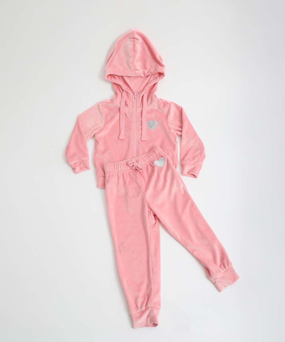 Conjunto Infantil Plush Capuz Zíper Marisa Tam 1 a 3 Rosa