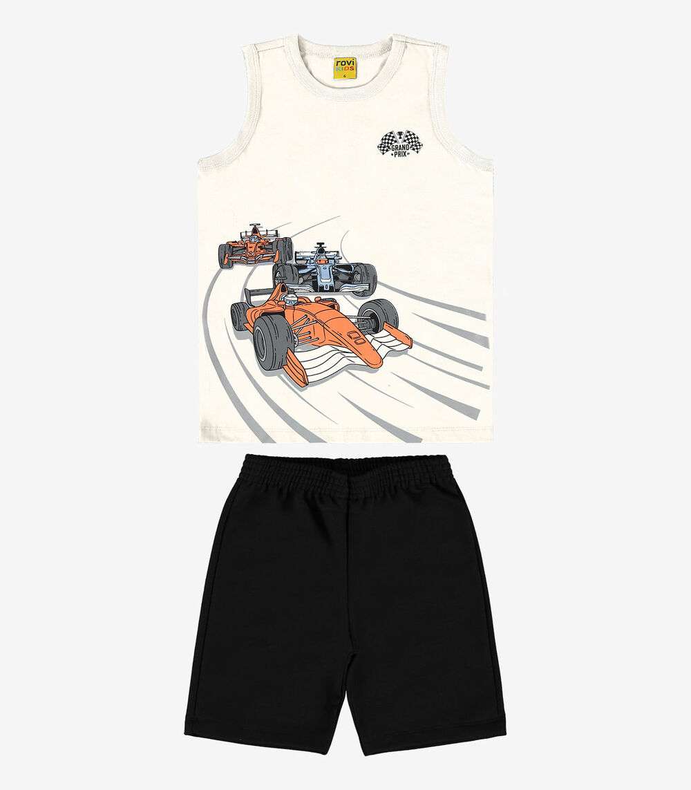 O Conjunto Infantil Regata com Bermuda Rovi Kids é ideal para oferecer conforto e estilo aos pequenos. Feito em meia malha e moletom PA, a regata apresenta uma estampa localizada que traz um toque moderno e atraente. A bermuda, com cós elástico, proporciona um ajuste perfeito e liberdade de movimento, tornando o conjunto ideal para atividades diárias e brincadeiras. Perfeito para o verão, combina praticidade e um design descolado que vai conquistar as crianças.