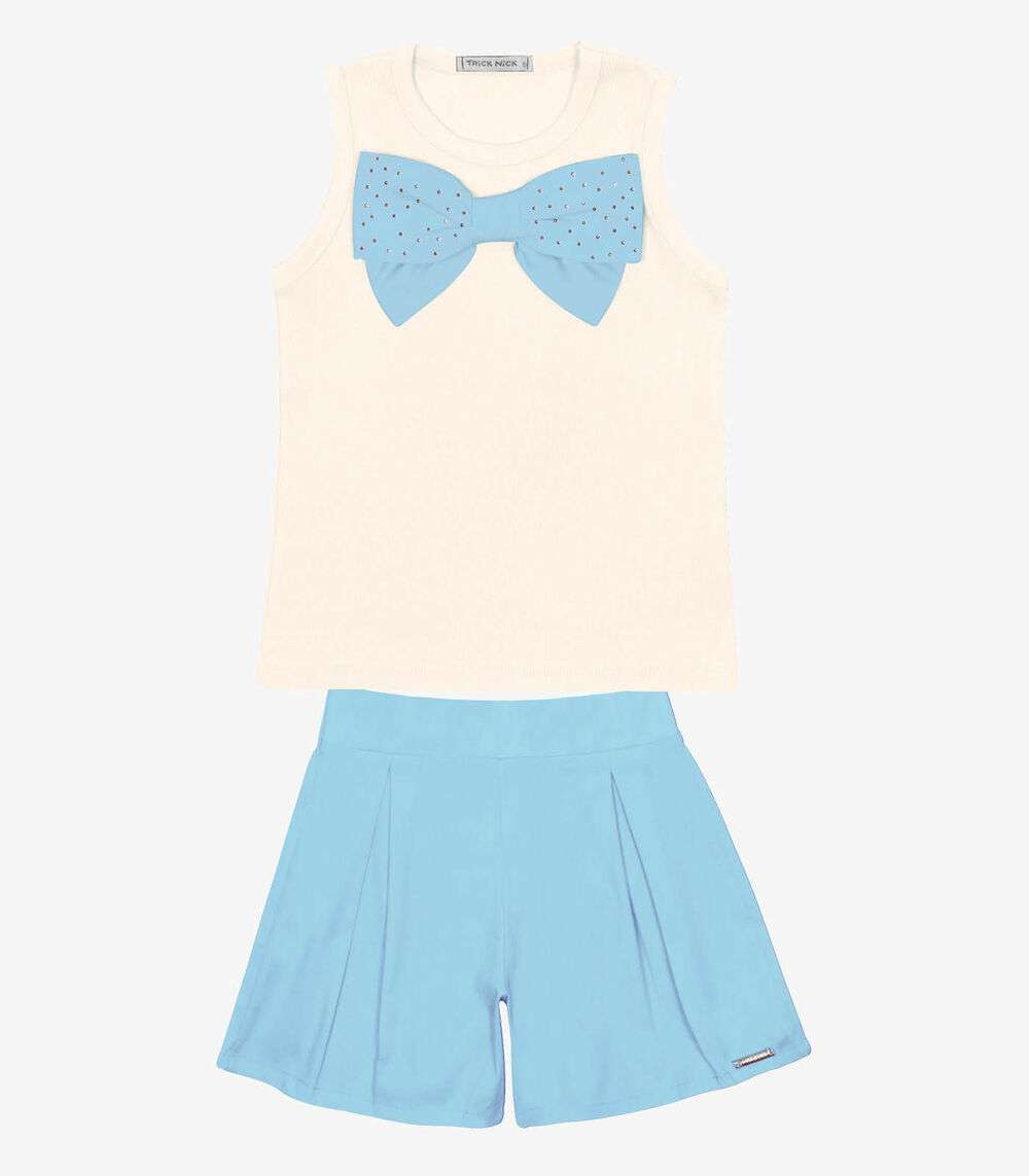 Conjunto Infantil Regata Laço E Shorts Trick Nick Bege